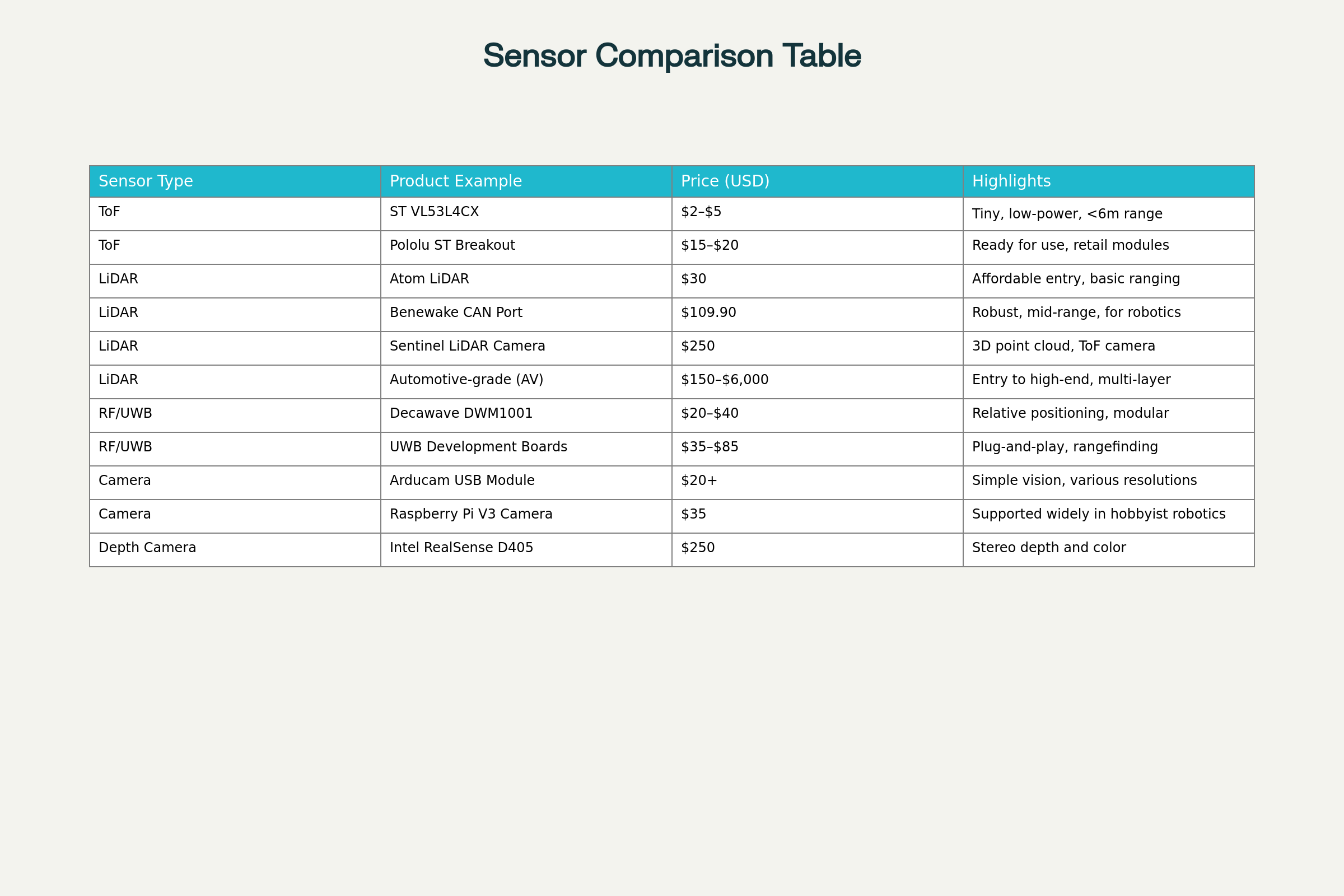 - For ToF sensors: Use their SDK or I2C interface to get distance readings similar to LiDAR.